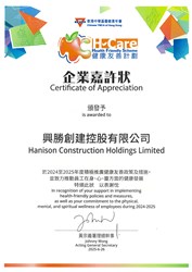 Awarded Unit: Hanison Construction Holdings Limited |  | H-Care Health Friendly Scheme Certificate of Appreciation
