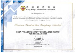 Organiser: Labour Department Awarded Unit: Hanison Construction Holdings Limited |  | HKCA Proactive Safety Contractor Award 2019